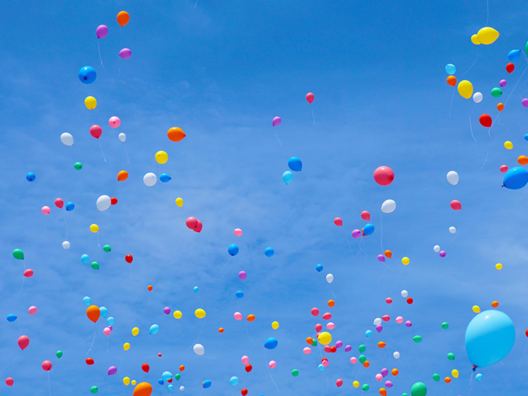 約750個のバルーンを来場者へ先着順に配布し、参加者みんなで空へリリース!