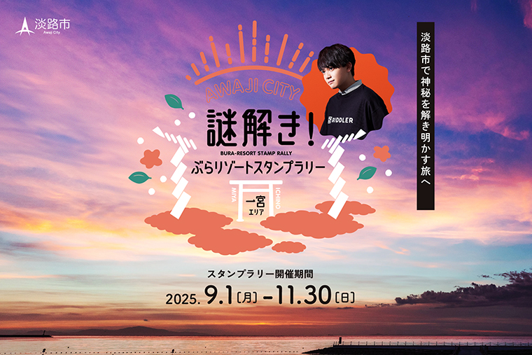 日本神話の「国生み」伝承が色濃く残る、兵庫県淡路市一宮エリア。こちらを舞台に、神秘を解き明かす「謎解きぶらリゾートスタンプラリー」が、9月1日(月)から11月30日(日)まで開催される。