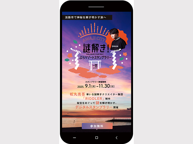 謎は、松丸亮吾さん率いる謎解きクリエイター集団「RIDDLER」がオリジナルで制作。WebやSNS上で出題された問題を、淡路島にしかない場所や物などを使って解き明かすと、淡路島の特産品が抽選で贈られる。