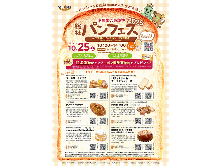 2025年は9周年を迎えることを記念し、10月25日(土)の10時~14時、『天満屋ハピータウンリブ総社店』にて特別イベント「総社パンフェス2025」を開催。