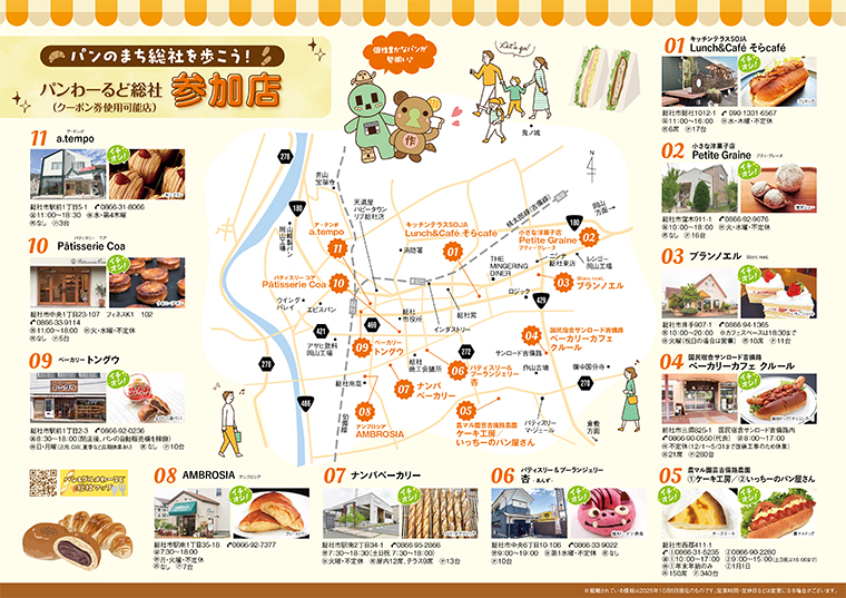 「パンわーるど総社」参加店舗11店舗で使用ができるので食べ歩きにぜひ活用して。