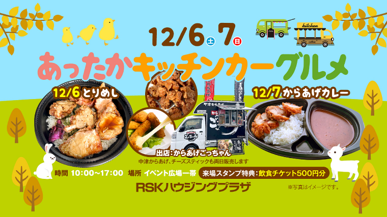 さらにキッチンカーの出店も。寒い季節にぴったりのからあげやチーズスティックなどのあったかグルメがキッチンカーで登場!