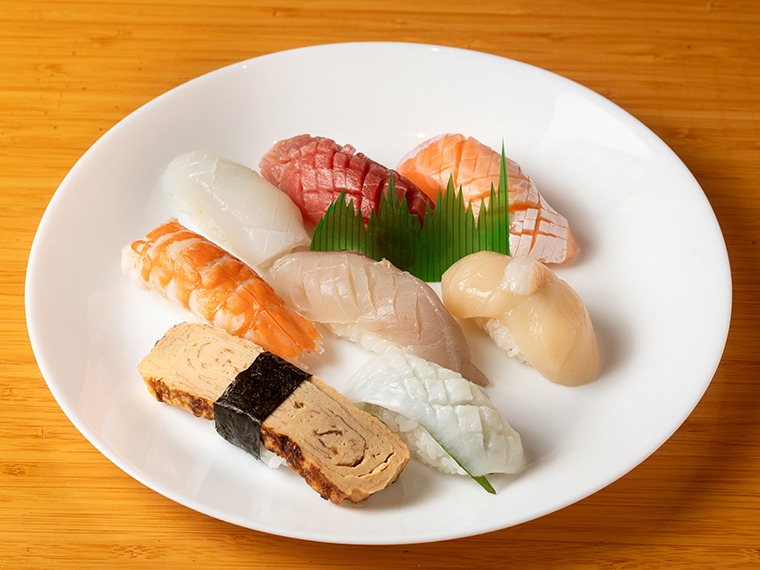 経験豊富な寿司職人が、握りたてで提供する絶品無添加寿司。丁寧な手仕事が施されたマグロやサーモンをはじめとする新鮮な魚介や玉子など、大ぶりのネタにシャリまでこだわった本格的な味が楽しめる。