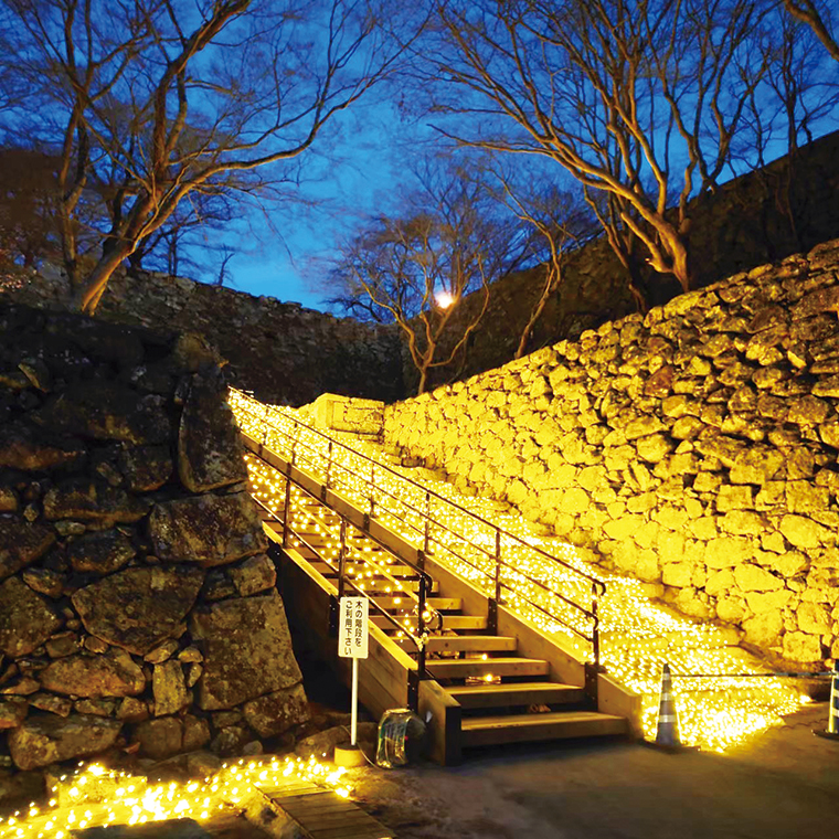 津山城北側の「もみじ谷」にある石段を2万5000球のLEDでライトアップ!