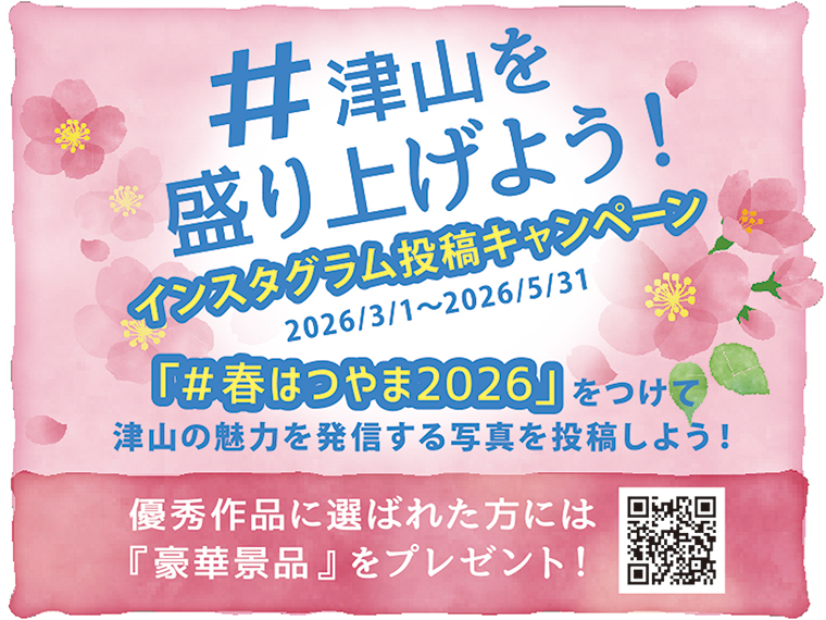 津山の魅力が伝わる風景などを撮影し、「#春はつやま2026」をつけて投稿すると、抽選で10名に津山の特産品をプレゼント。