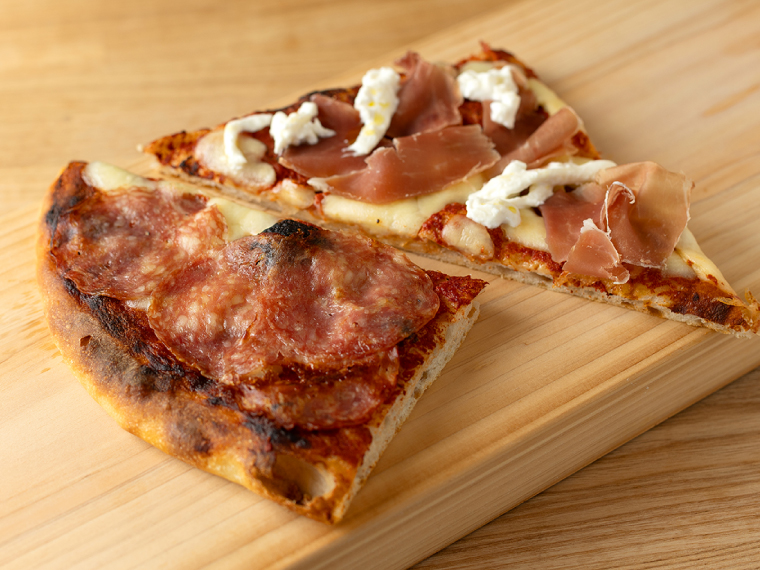 風味豊かで、表面はカリッと香ばしく、中はふんわり。厳選したイタリアンハムや岡山県産野菜とも相性がよく、食べ応えも十分。
