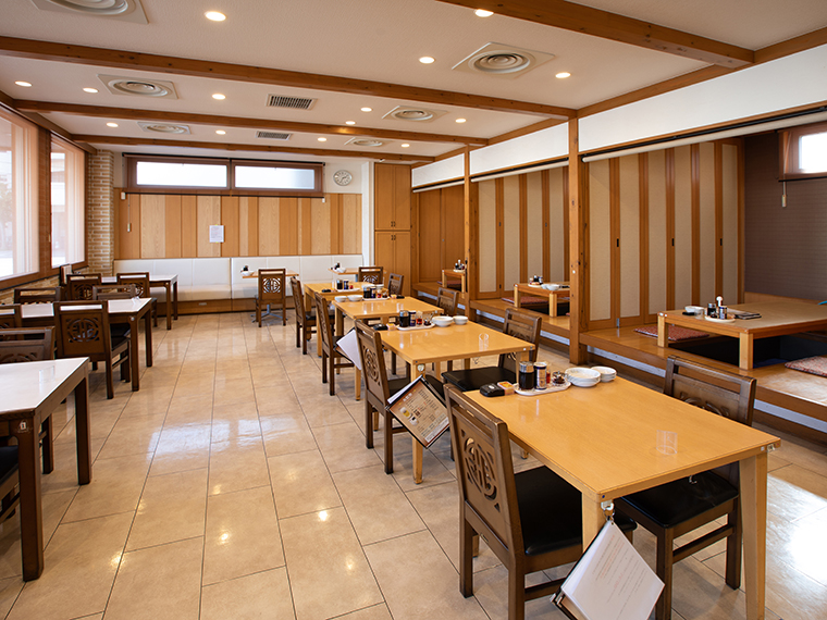 店内にはテーブル席や小上がりの掘りごたつ席を完備。