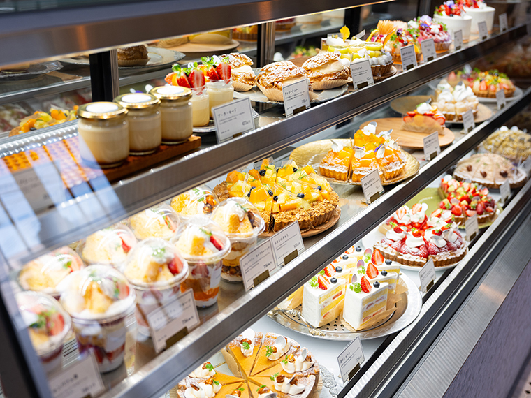 タルトや焼き菓子を主軸に華やかなクレープや自家製ジェラートなどが人気のスウィーツ店だ。
