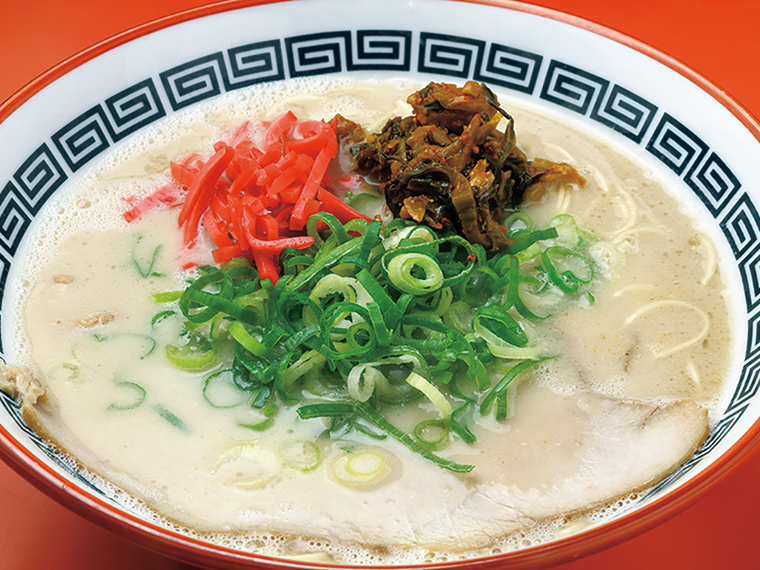 コシのある細麺とともに、無料の自家製辛子高菜や紅ショウガをトッピングして味わってみてください。