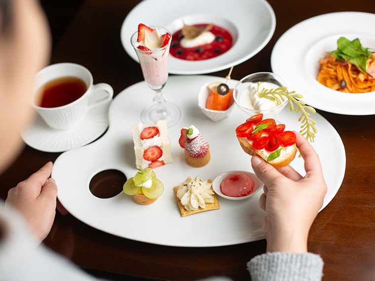 また、見た目も華やかな「アフタヌーンティーセット」3500円(前日までに要予約)も人気。スウィーツと軽食に「ベリーソースのアイス添え」、ドリンクがセットに。