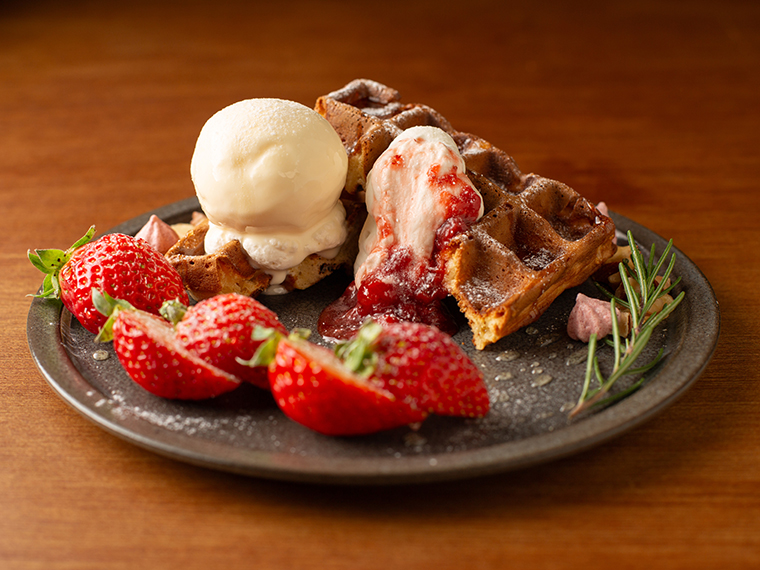 ワッフルやパフェ、テリーヌなどに四季折々の味覚を合わせたスウィーツも秀逸だ。