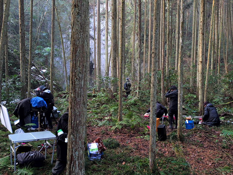5日間の撮影は、森から始まり森で終わりました。この期間は全国的にも大寒波に見舞われて、ロケ地でも積雪がありました。