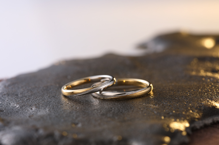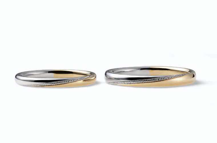 手を重ねた時、指先で感じる確かな重みと、プラチナとゴールドの織りなす柔らかなグラデーションを、心ゆくまで愛でて欲しい。