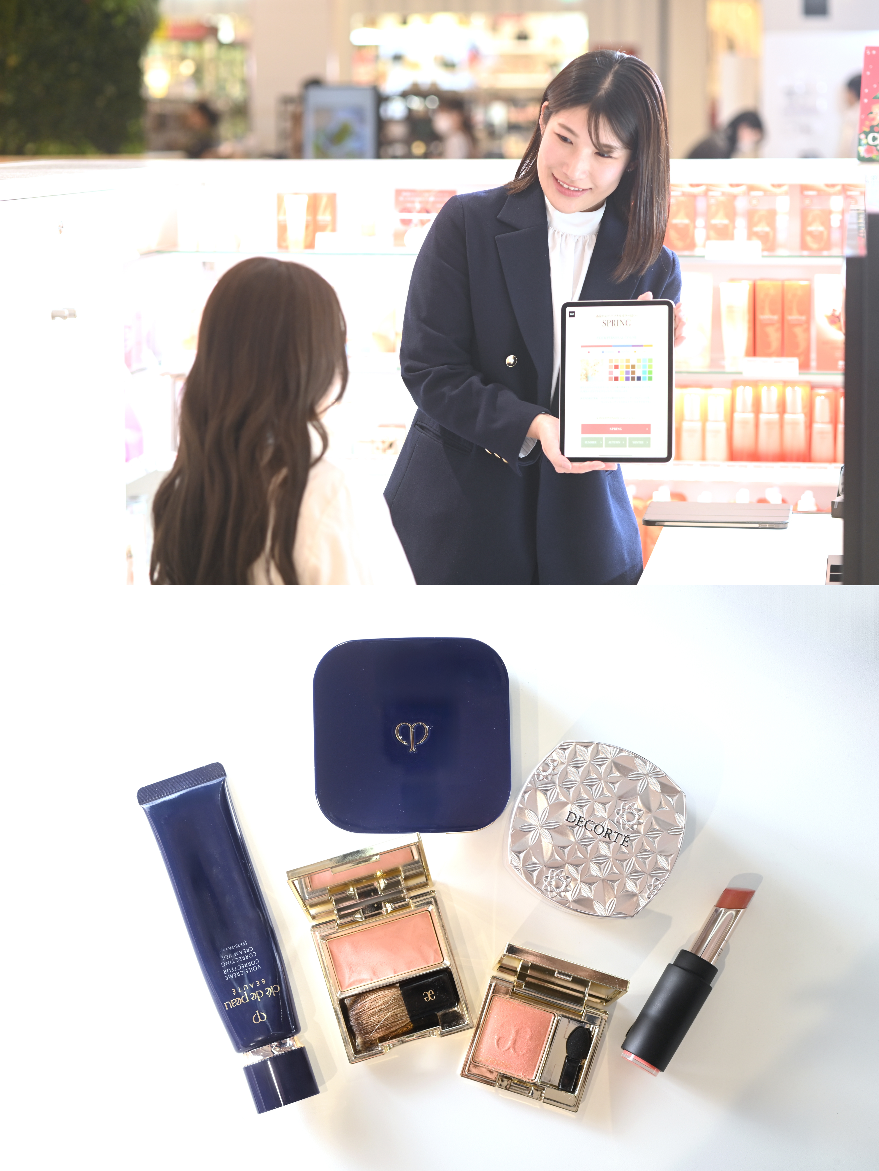 最短1分でパーソナルカラーを無料診断。ビューティーアドバイザーが似合うメイクを提案してくれる。