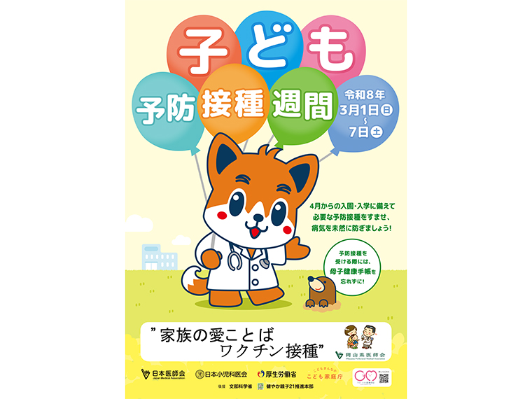 3月1日(日)から始まる「子ども予防接種週間」に合わせて、岡山県医師会が発信している予防接種に関するQ&Aと、保護者向けのお知らせを紹介。