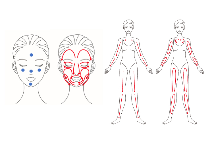 身体は容器から直接、肌の上にスーッと線を描くように出す「ストローづけ」をし、そのあと大きな円を描くように広げると、ムラなくきれいに塗れます。