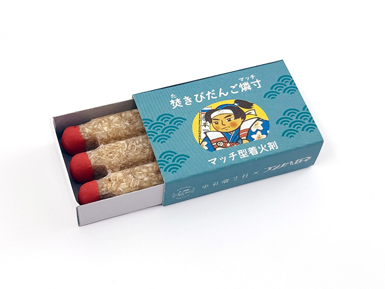 マッチ型着火剤。その名は「焚きびだんご燐寸(マッチ)」
