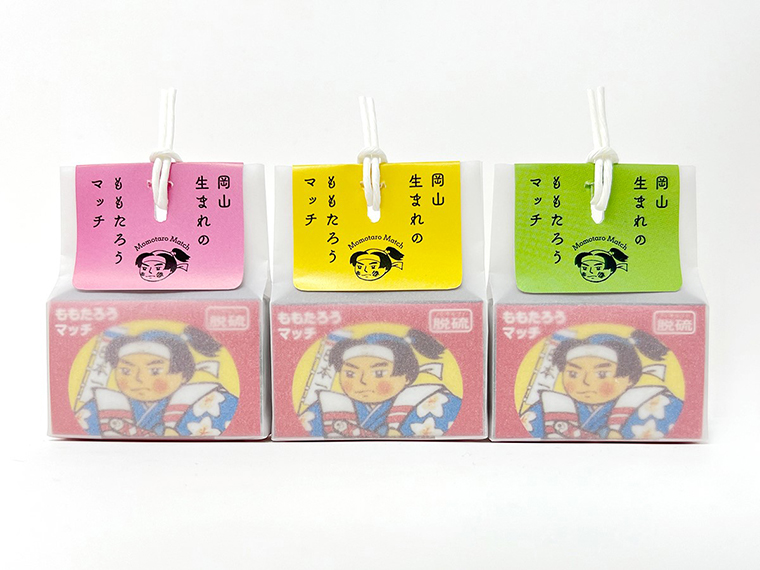 岡山土産としても人気の高いマッチ「ももたろうスペシャリティ」の絵柄を使用したレトロかわいいデザインを採用し、岡山愛が溢れる仕上がりに!
