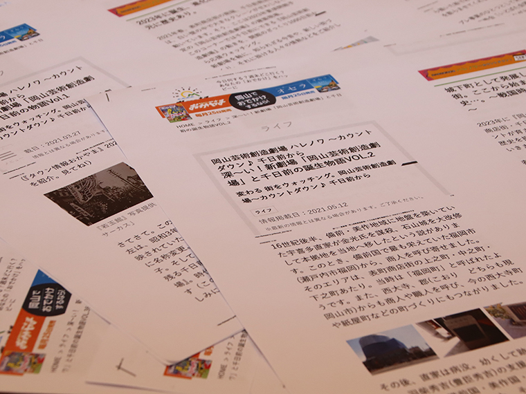 当コーナーの立ち上げには、『月刊タウン情報おかやま』の創刊者であり、株式会社ビザビの故・前坂紀会長の言葉が背景にありました。「表町に『ハレノワ』が開館するのは本当にすばらしいこと。でも、劇場だけが単体で頑張るのではなく、地域みんなで一緒に盛り上げることが大切。そのためにも、地域の歴史や街の人の声を共有し、愛着が生まれるような情報を発信する、タウン誌ならではのコーナーにしてほしい」。