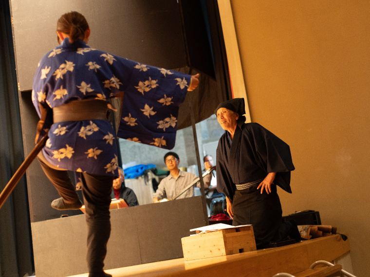 三味線に合わせて動きとせりふを確認。受け継がれる技と教え