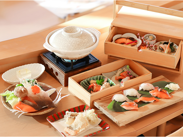 レストランや古酒専門店、劇場からなる複合施設。その中にある洋食レストラン『海の舎』では、宝石のようなイチゴのズコットケーキ、和食店『青の舎』では、旬の淡路島サクラマスと桜鯛づくしの御膳が登場! どちらも5月末までの限定メニューなのでお見逃しなく。
