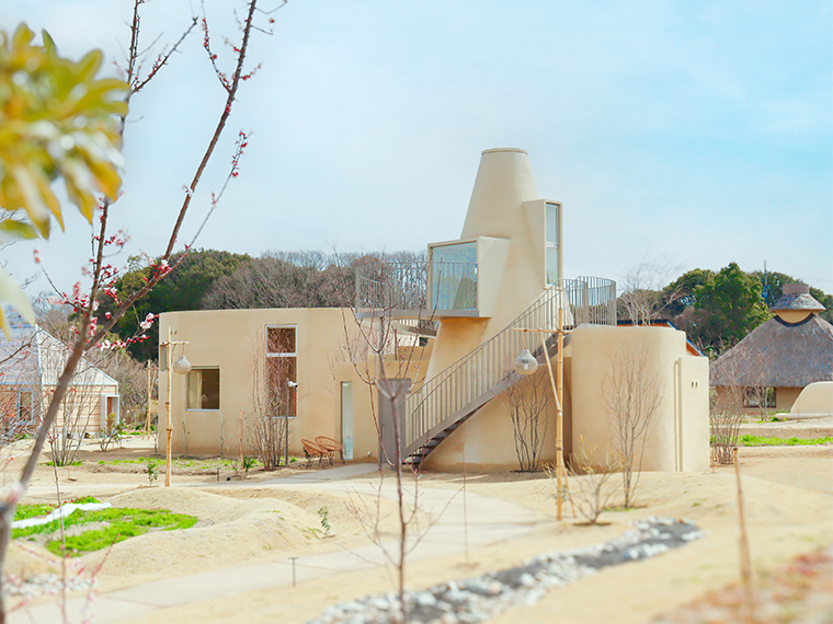 9組の建築家が自然素材を活かして手がけた全11棟のヴィラ。併設する循環型の畑で野菜やハーブを収穫し、その場で味わう「農ある暮らし」が体験できる。